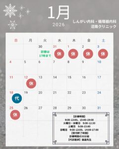 1月の休診日・代診日のお知らせ